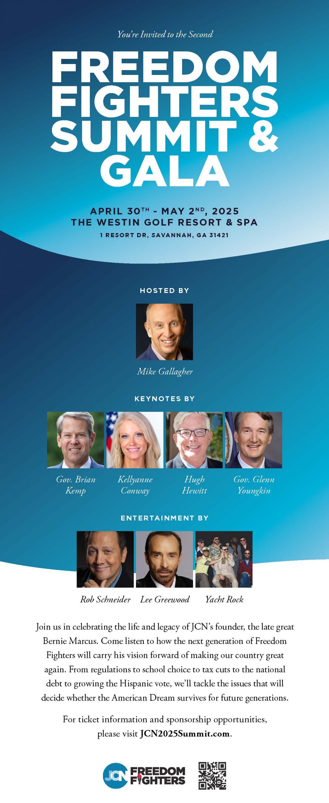 Savannah will host the Job Creators Network’s (JCN) Freedom Fighters Summit & Gala from April 30 to May 2. The event will bring together conservative leaders, policymakers, and business advocates. This year’s theme, “Passing the Torch,” honors the legacy of JCN’s late founder and Georgia business titan, Bernie Marcus.