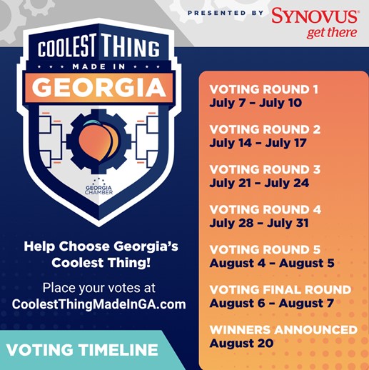 Georgia’s ingenuity takes center stage with the inaugural “Coolest Thing Made in Georgia” competition—an opportunity to celebrate the best in our state’s innovation and craftsmanship. Manufacturers, makers, and creators from every corner of Georgia have entered their standout products into a head‑to‑head public voting bracket to crown the 2025 winner.