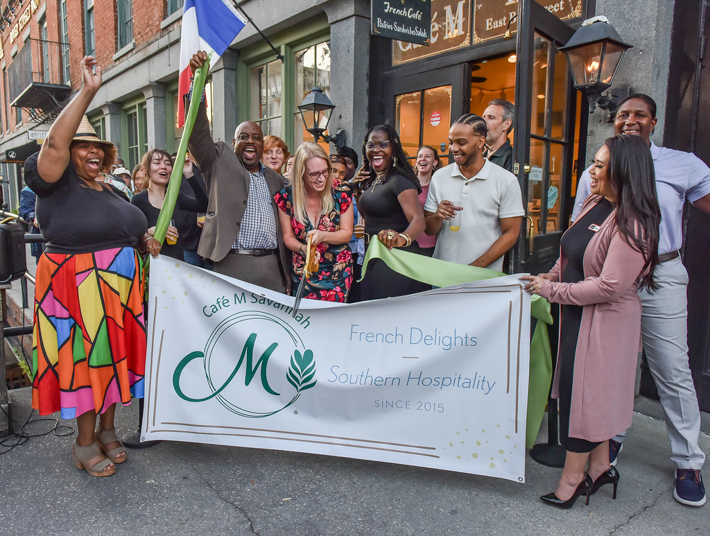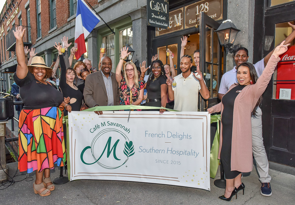 A landmark celebration took place as Café M marked its 10-year anniversary with a special evening event on Wednesday, Oct. 15. The popular downtown spot, located at 128 E Bay St., hosted the event in partnership with Blessings in a Bookbag, blending business celebration with philanthropic community outreach. Guests enjoyed an evening of networking, great music, and light bites following the 10-year ribbon cutting. Attendees were invited to support the featured charity by bringing nonperishable items—such as canned yams, stuffing mix, and corn bread—or Kroger gift cards. The Savannah Area Chamber of Commerce congratulates Café M on reaching this significant decade-long milestone and applauds its dedication to supporting vital local organizations like Blessings in a Bookbag.