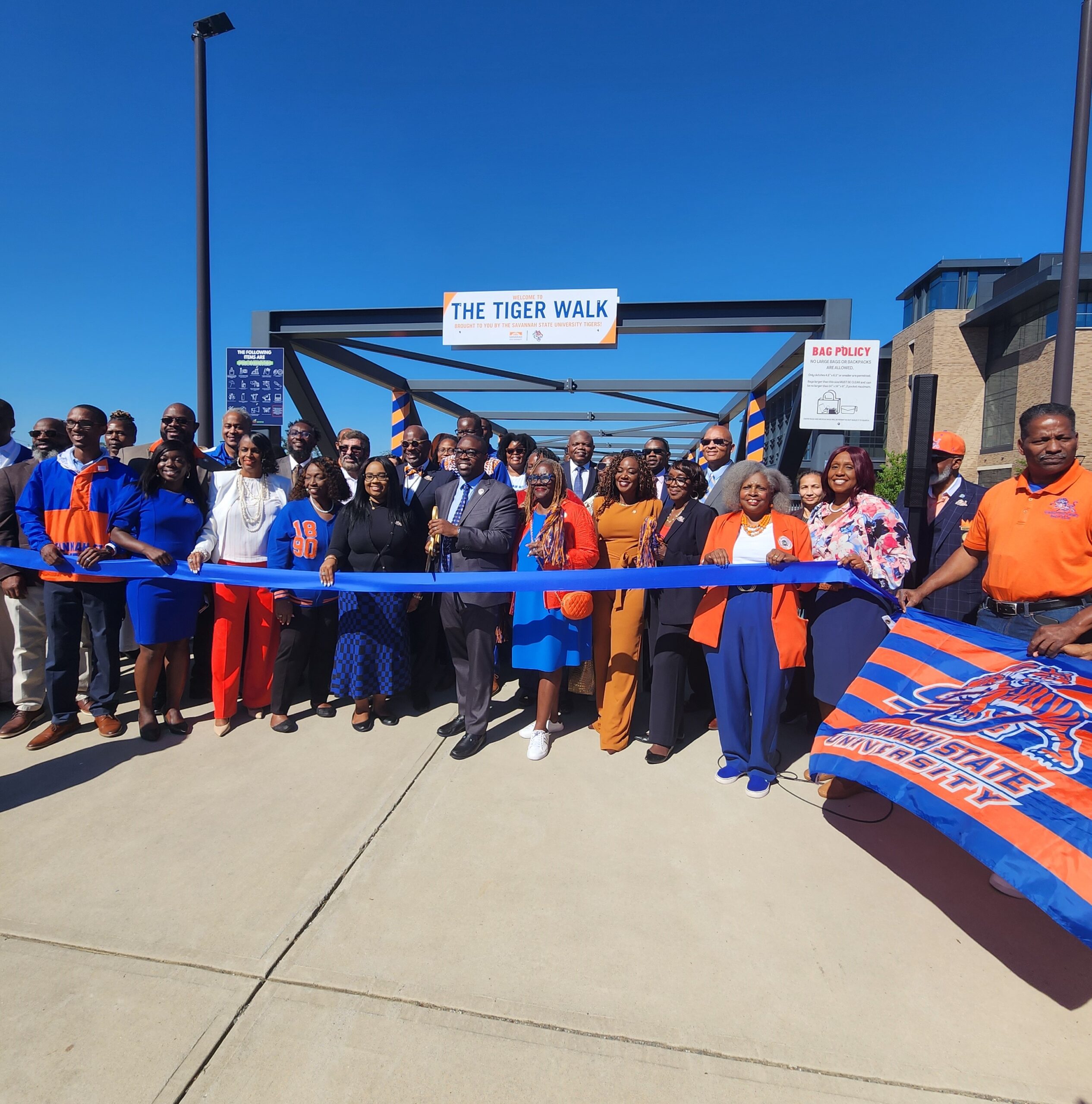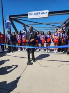 Savannah State University (SSU) officially planted its Tiger pride in the city’s entertainment hub with the celebration of the new Tiger Walk installation on Thursday, Oct. 16. The event, held at Enmarket Arena, marked the opening of a new bridge installment designed to bring the unmistakable SSU spirit downtown. The opening drew a powerful gathering of civic and academic leaders, including the new University President, local and state elected officials, alumni, and current students. With the mascot and cheerleaders adding excitement, the event successfully underscored the vital link between the university and the broader community. The Savannah Area Chamber of Commerce congratulates SSU on installing this new landmark, which celebrates academic excellence and strengthens the connection between our higher education institutions and the Lowcountry.