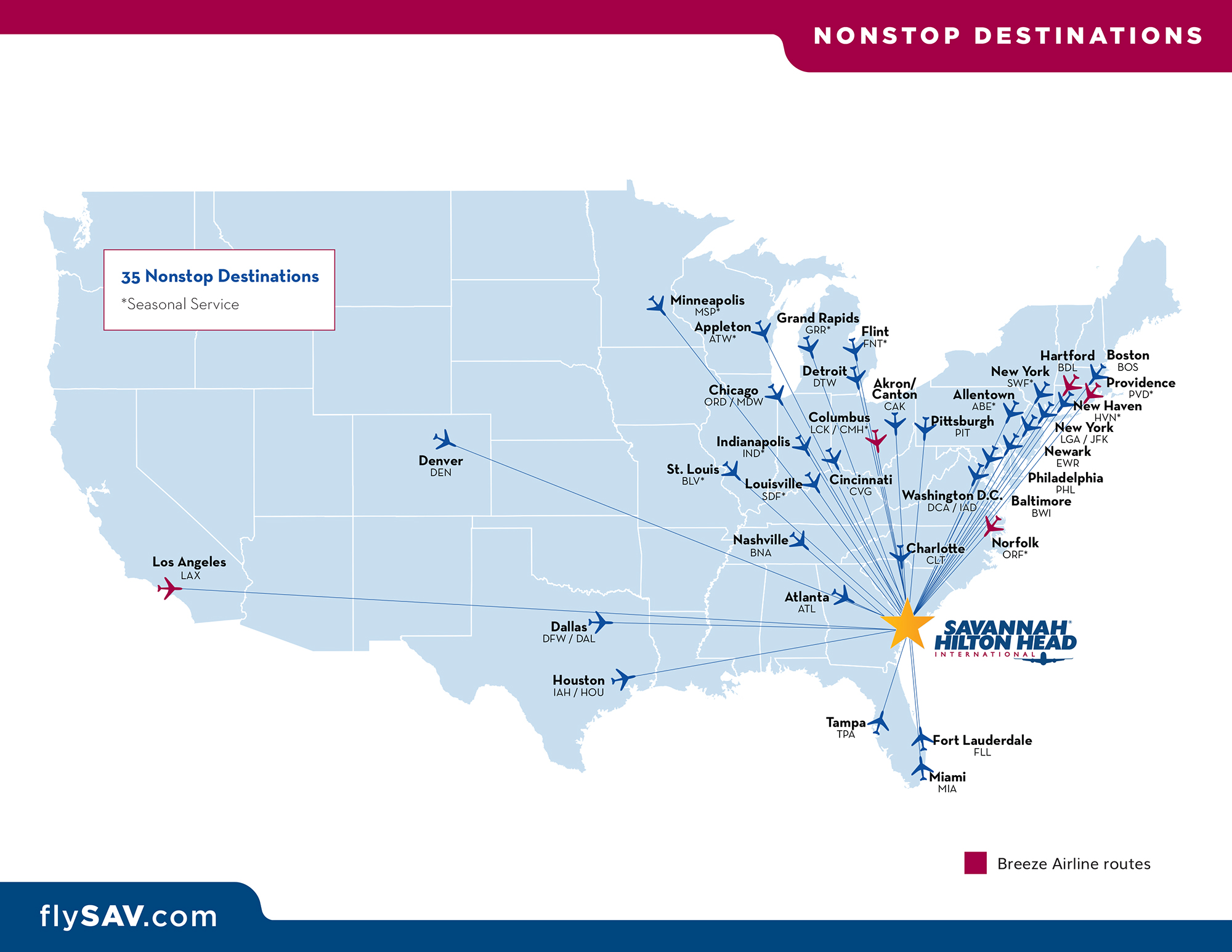 The new routes to Savannah/Hilton Head International Airport include: