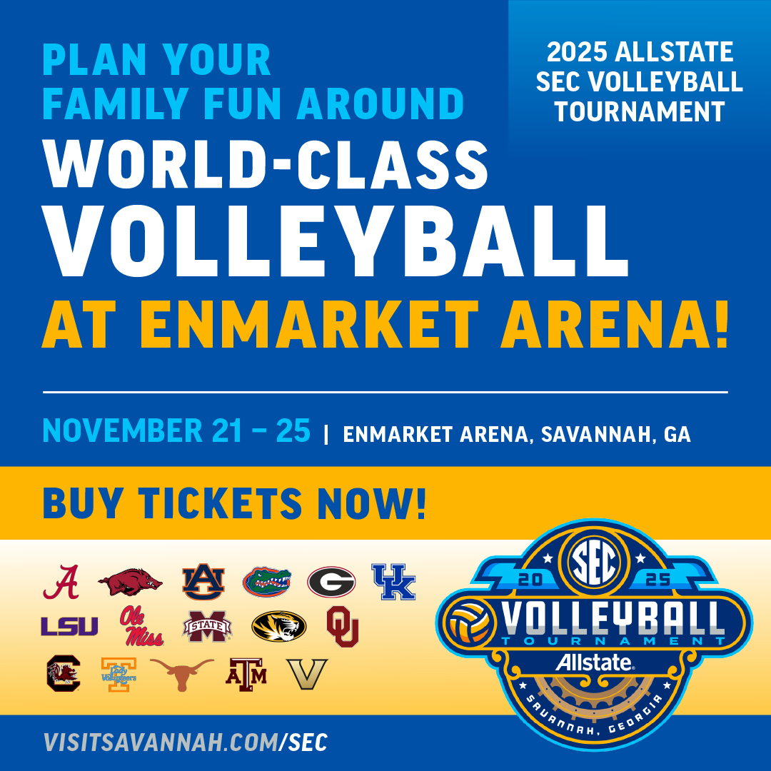 This November, the City of Savannah will take center stage as the premier volleyball event of the season lands at Enmarket Arena. From November 21–25, all 16 powerhouse programs from the Southeastern Conference (SEC) will compete across five thrilling days for the conference title at the Allstate SEC Volleyball Tournament.