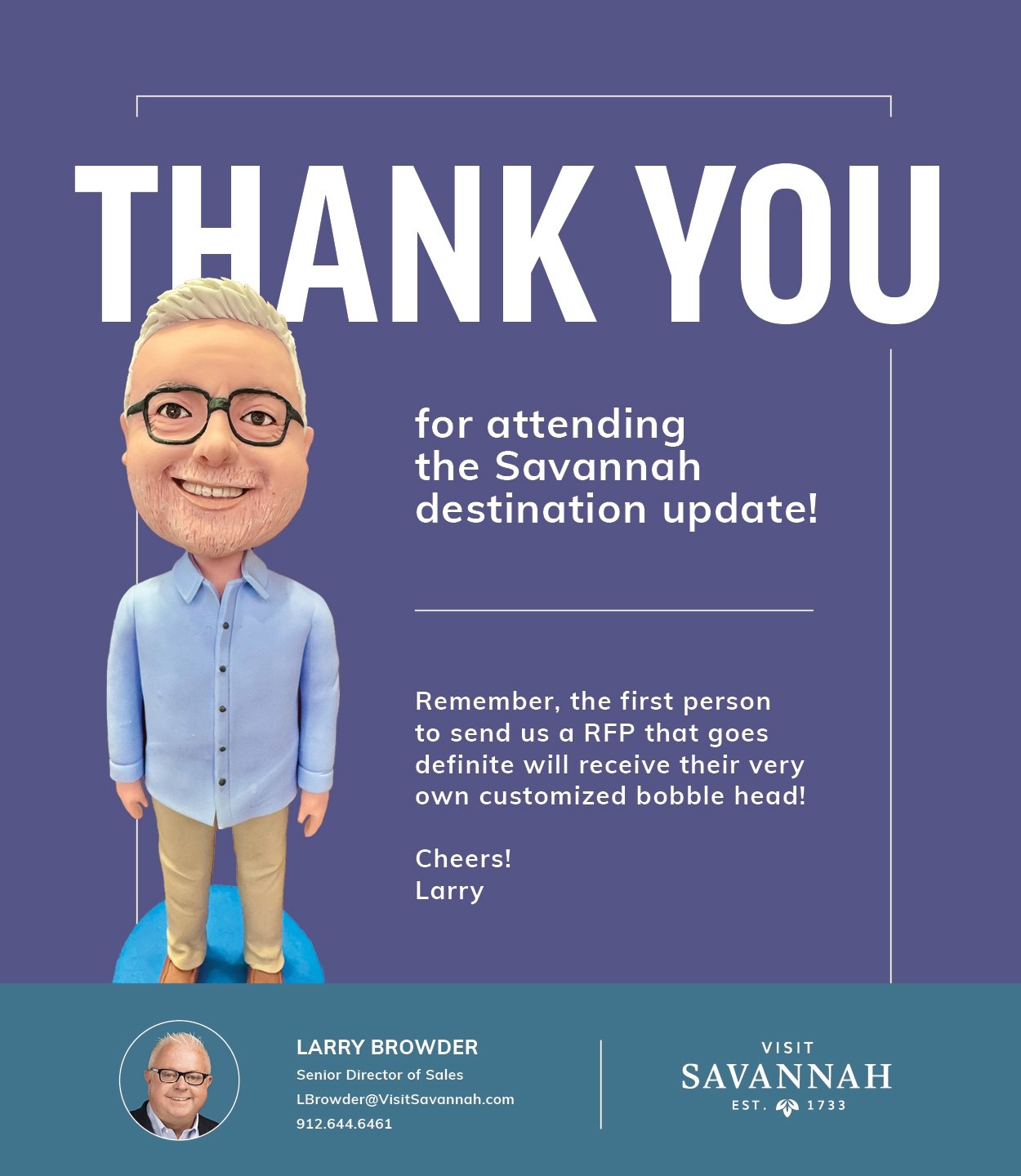 The presentation featured a destination video, a sneak peek at the convention center’s enhancements, and emphasized the city’s accolades, seasonal value, and strategic advantages for hosting events. Larry entertained the audience by unveiling his bobblehead and announced that the first attendee to send a lead that goes definite would receive their very own customized bobblehead.